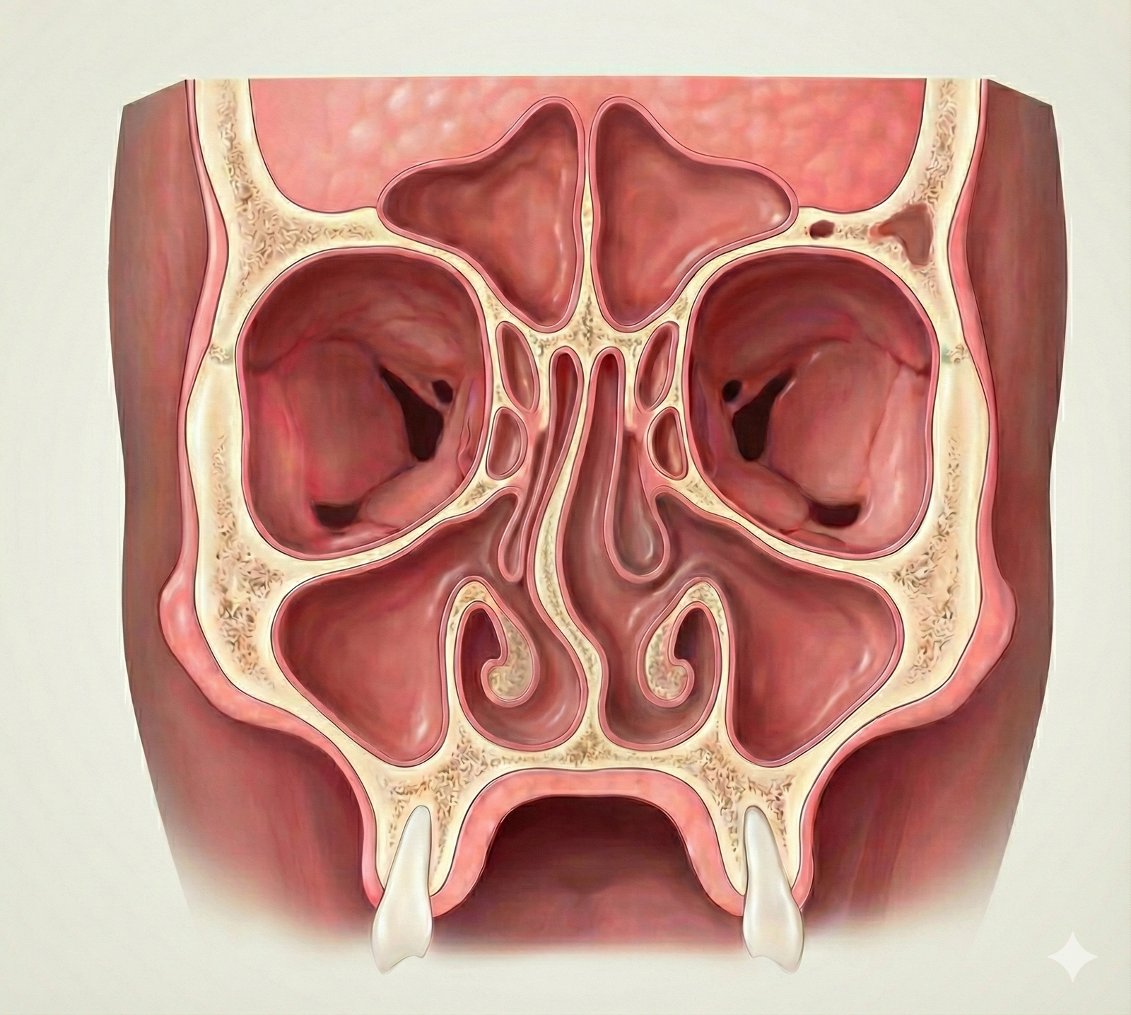 O septo nasal é a estrutura interna que separa as duas narinas. Ele é formado por osso e cartilagem e idealmente deve estar centralizado, permitindo a passagem equilibrada do ar pelas duas fossas nasais.